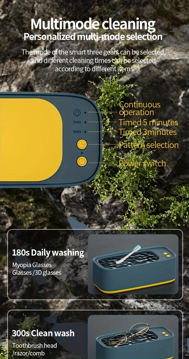 A high-frequency 45KHz ultrasonic jewelry washer with a 12oz water tank. Safely and efficiently cleans glasses, watches, earrings, rings, necklaces, razors, and contact lenses—perfect for effortless home use and as a thoughtful gift.