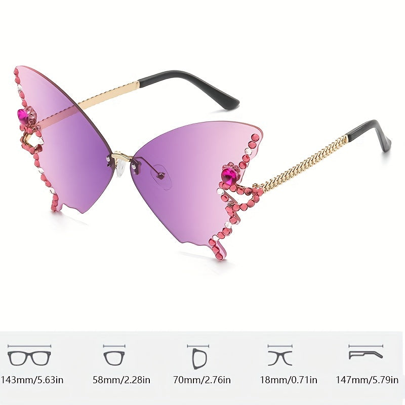Trendy butterfly-shaped sunglasses adorned with sparkling rhinestones. Perfect for women’s beach parties, club nights, or adding a bold aesthetic touch to any outfit.