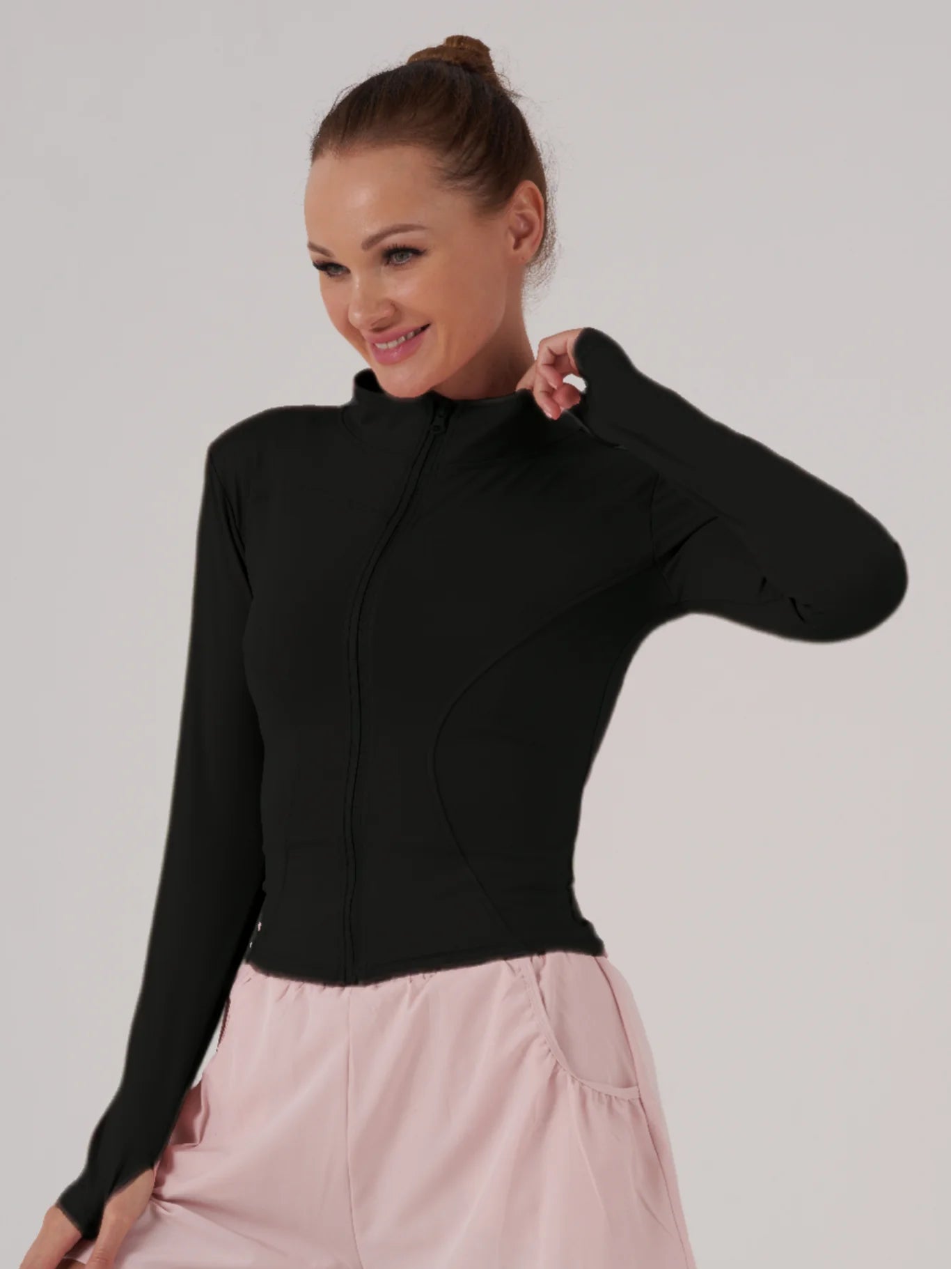 Stay warm and active with this women's zip-up sports jacket, perfect for yoga, running, cycling, and workouts. Designed for comfort and performance, it’s a must-have for your activewear collection.