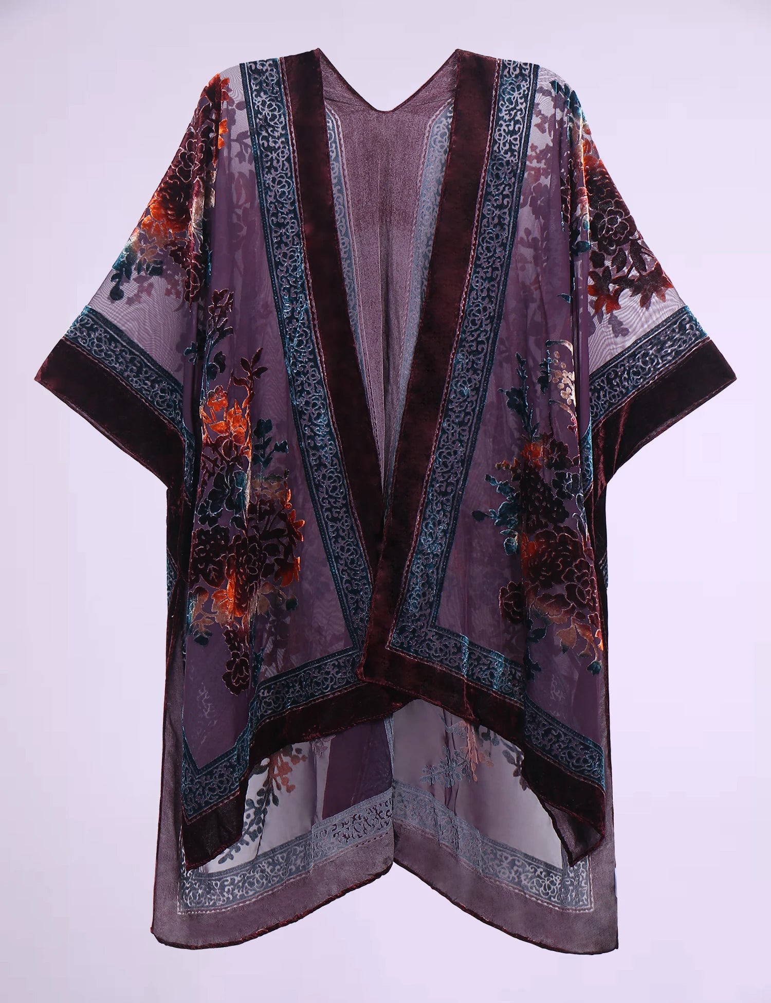 Add elegance to your wardrobe with this burnout velvet kimono cardigan, featuring a beautiful floral design in a soft, flowing silhouette. Perfect as a holiday cover-up, casual cardigan, or evening shawl, this versatile piece elevates any outfit.