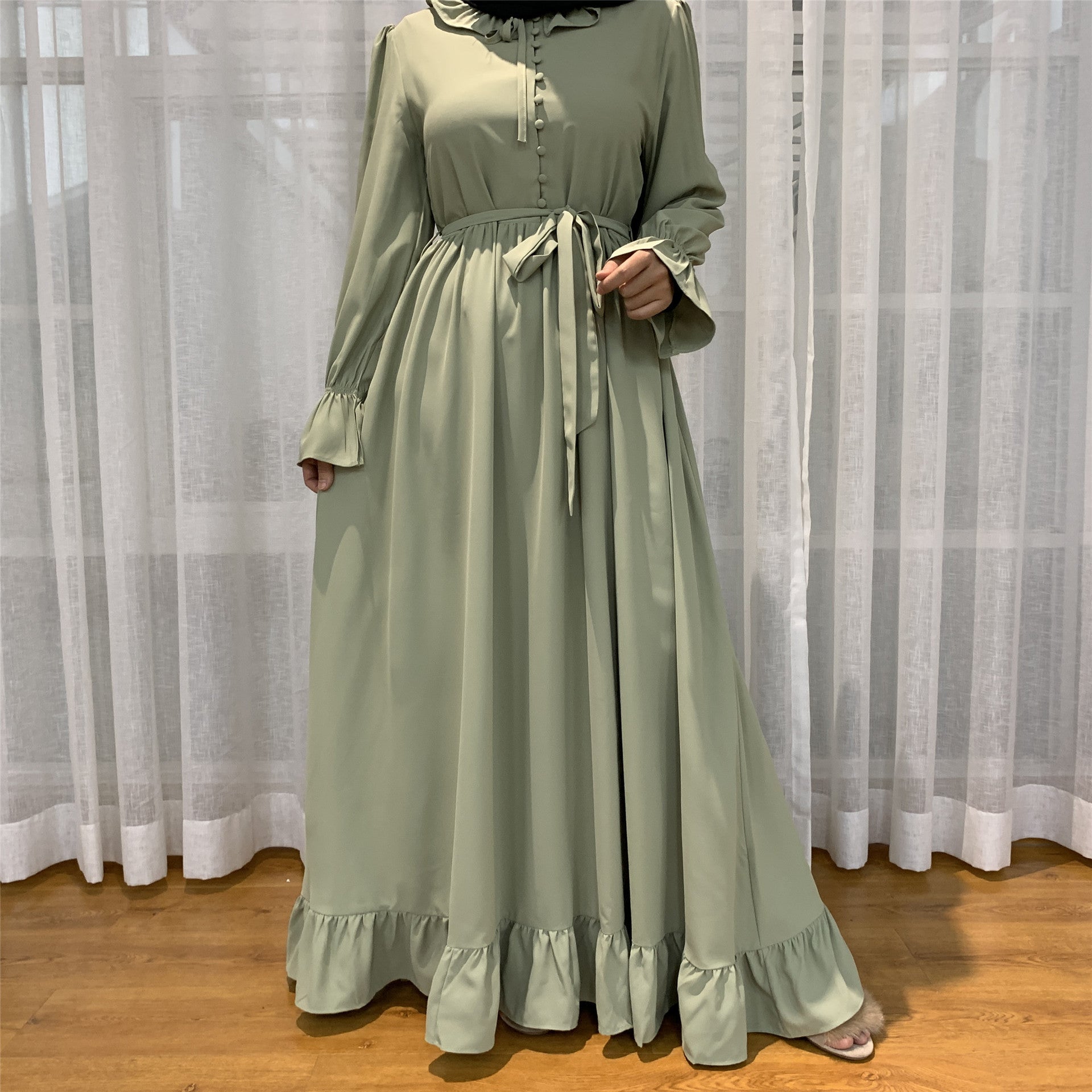 The Solid Color Stitching Maxi Muslim Dress combines modesty with modern elegance. Made from high-quality broken card fabric with 95% polyester fiber, it features a sleek solid-color design accented by stylish stitching details. Available in Black, Hu Blue, Light Green, Brick Red, Light Blue, and Pink, this maxi dress is perfect for casual, formal, or everyday wear. Its comfortable fit and flowing silhouette make it both flattering and practical. Available in sizes S, M, L, XL, and XXL, it’s a versatile addition to any modest wardrobe.