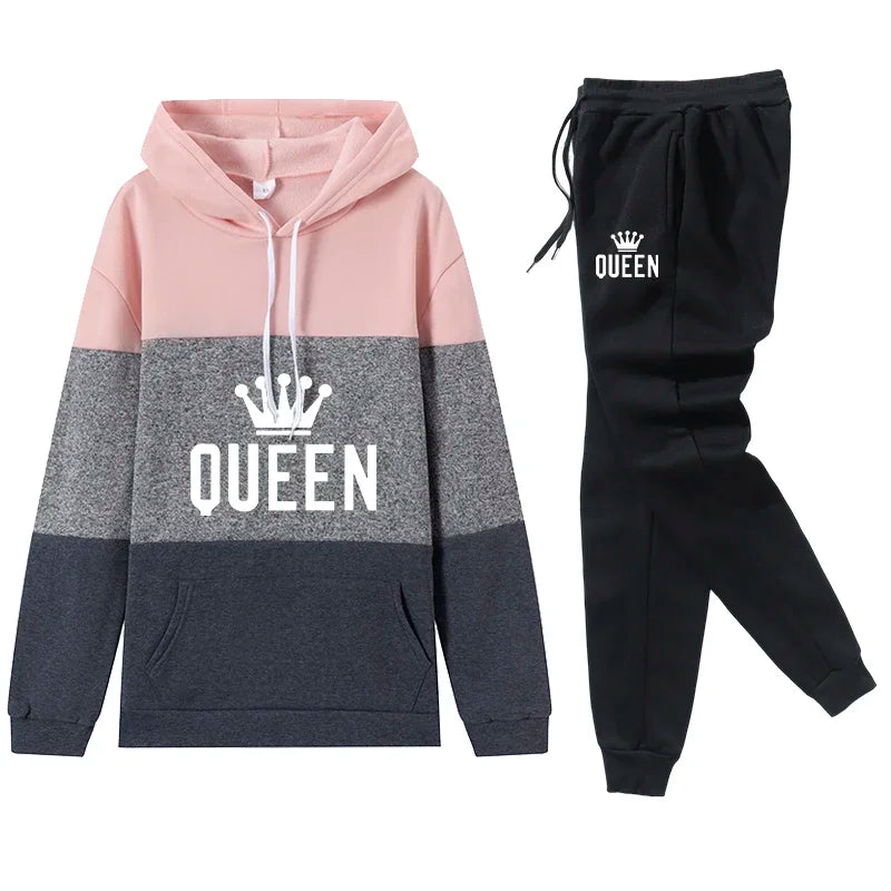 Step out in comfort and style with this queen print hoodie and sweatpants set. Perfect for casual wear, lounging, or daily outings during autumn and winter.