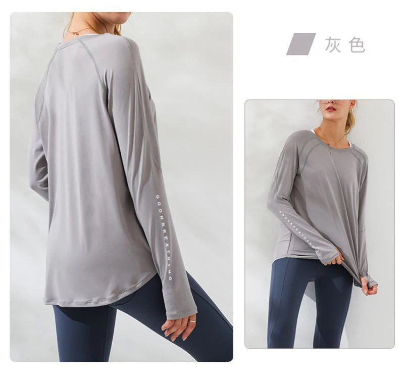 Train in comfort with this long sleeve fitness top, designed for running, yoga, gym workouts, or casual wear. Its breathable, loose fit makes it perfect for active and everyday lifestyles.