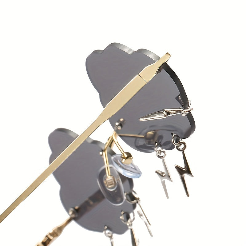 Trendy dangle-style sunglasses featuring a cloud and lightning design with gradient ocean lenses. Perfect for men, ideal for parties, beach outings, shopping, driving, or as a stylish birthday gift.