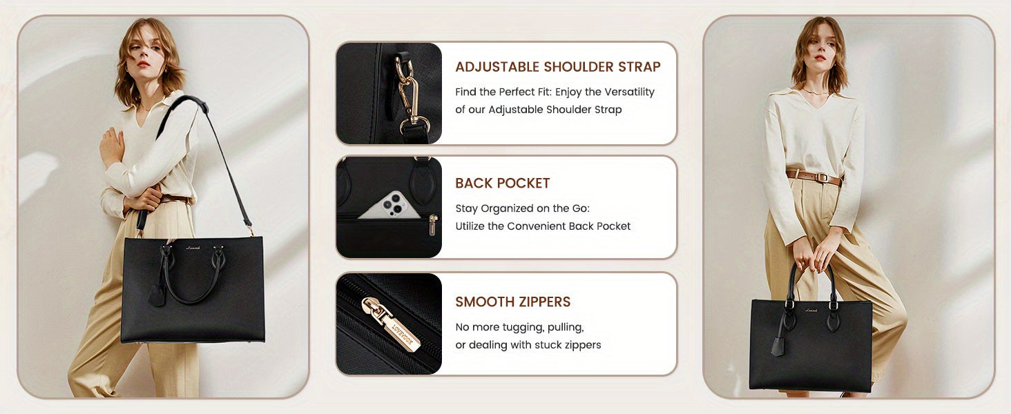 A sleek and professional laptop bag designed for women, fitting up to 15.6-inch devices. Ideal for work, business meetings, or daily office use, combining style and functionality.