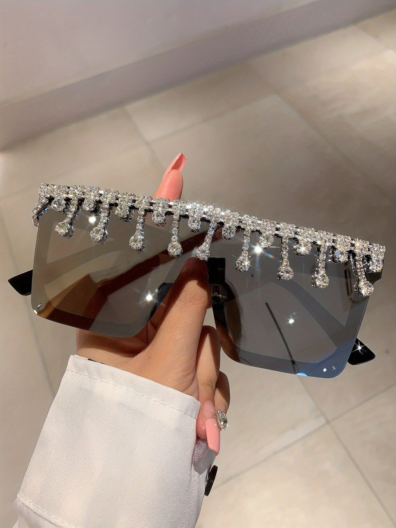 Fashionable oversized square sunglasses adorned with sparkling rhinestones. Perfect for women and men, ideal for parties or making a bold, stylish statement.
