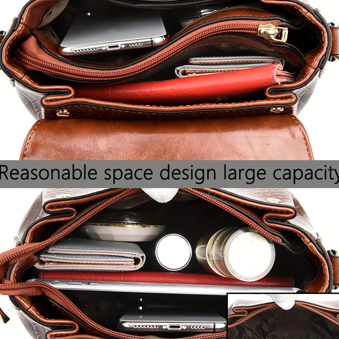 A stylish vintage-inspired shoulder bag featuring a crocodile pattern and flap closure. Perfect for women seeking a chic and versatile accessory for daily use or special occasions.